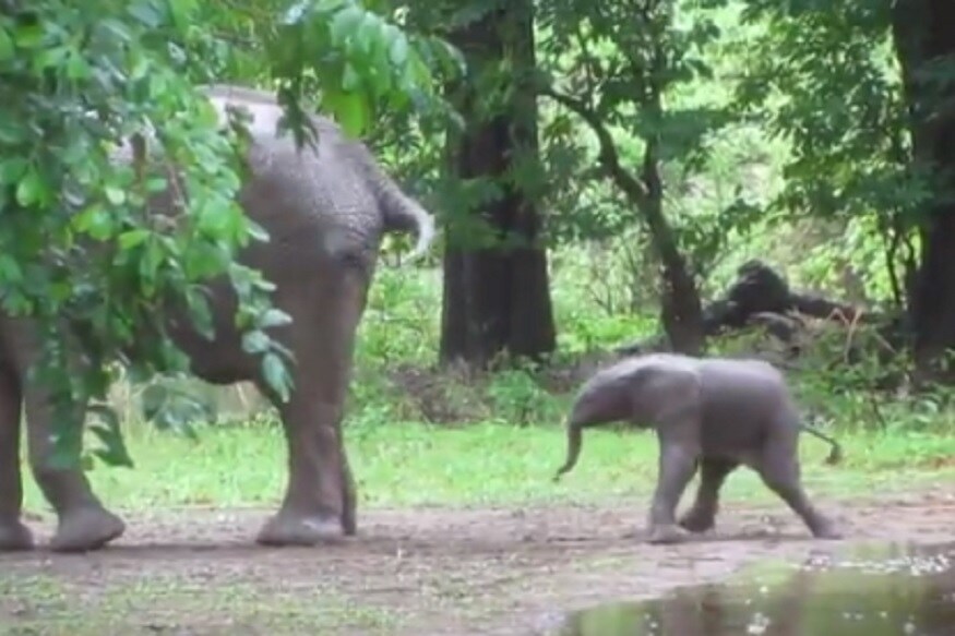 बारिश में मां के साथ अटखेलियां कर रहा है ये छोटा हाथी, Video Viral